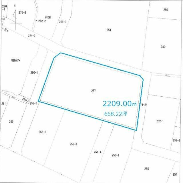 | 土地面積 | 公簿 2,209.00㎡ | 坪数 | 668.21坪 | 坪単価 | 3.72万円 |